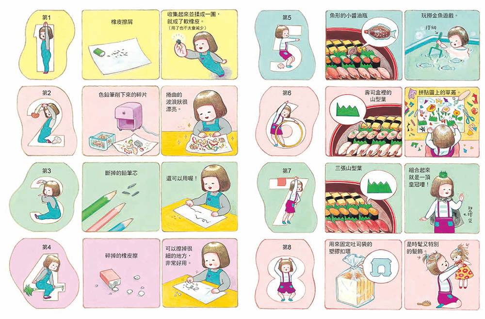 ★ 激發想像力不需要高級教具或複雜材料,即使是隨手即可取得的小東西,也都是孩子眼中的神奇寶物!一起用有限的物資,激發出無限大的創意吧!──呂妍慧(童書作者.美術老師)