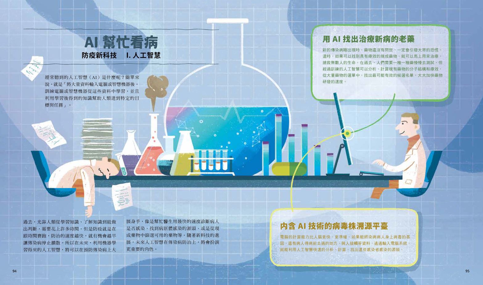 大仁爺爺從小就喜歡自然課,對生命科學特別感興趣。他喜歡問為什麼,也喜歡做研究。他是美國約翰霍普金斯大學的流行病學博士,認為流行病學家的工作十分有趣,就像福爾摩斯或偵探柯南一樣,都要仔細觀察和認真推理。另外,他也以烏腳病和病毒肝炎的研究聞名國際。2003年SARS大流行的時候,他當了衛生署長帶領全民防疫,也努力提升臺灣的傳染病防治體系。他還曾任中研院副院長、第十四任中華民國副總統等職。