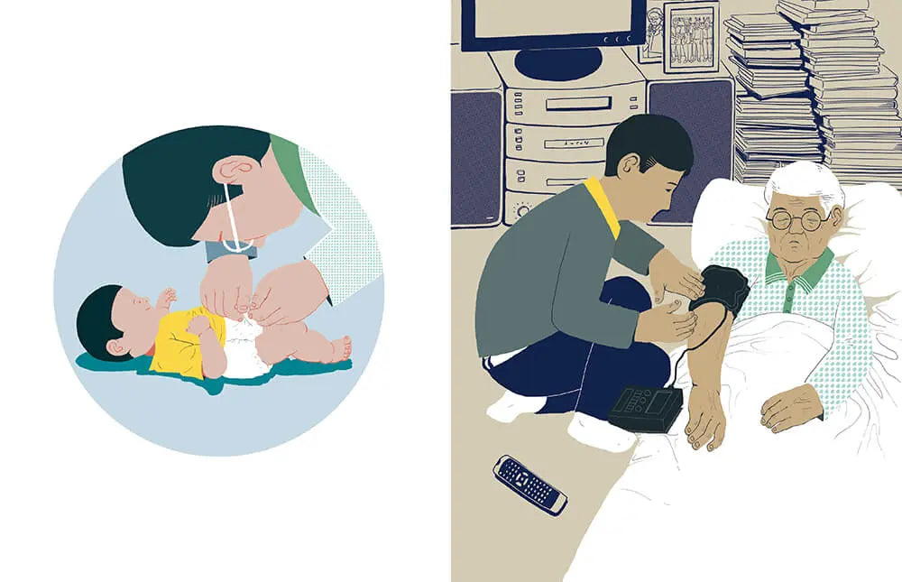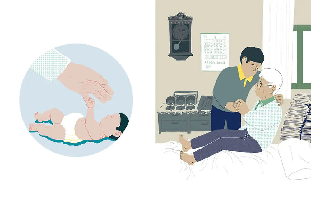 While it's commonly believed that caregivers for elderly parents are predominantly women, a survey by the Ministry of Health and Welfare shows that nearly half of family caregivers are now men. Men are naturally less attentive than women and less adept at communication and emotional expression, which may result in less patience and resilience in caregiving. Therefore, this book, *Father's Big Hands*, offers valuable reminders for family caregivers and provides a source of strength through love, even amidst exhaustion. Dr. Li Weiwen, dentist and writer