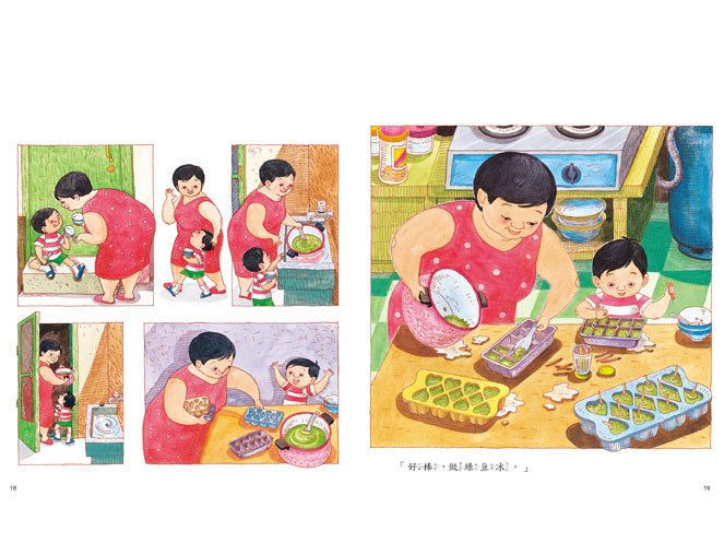 I want to pass this kind of happiness to everyone and every child. This timeless picture book, which has been published for more than 30 years, invites you to read it together and feel the simple happiness of shopping, cooking mung bean soup, and eating mung bean ice cream between parents and children.