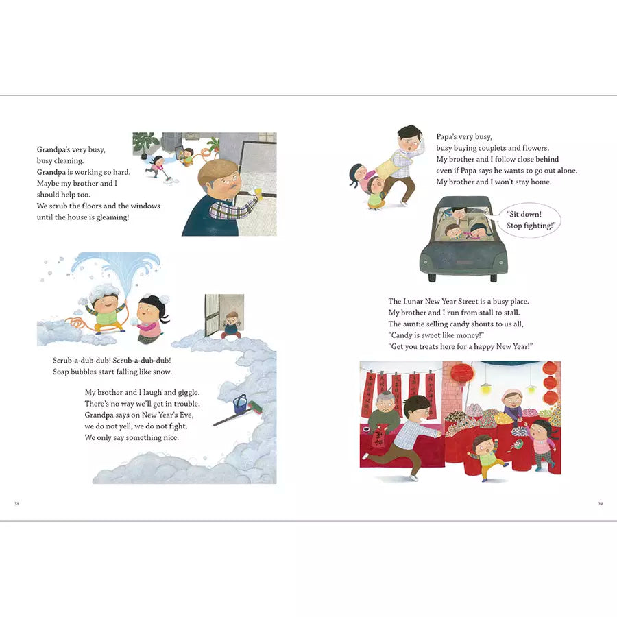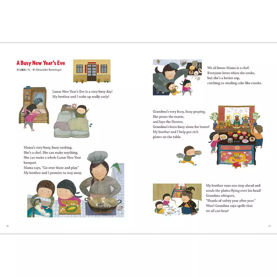 過新年囉!《好忙的除夕》以孩子親身感受,搭配時而押韻的文字,生活化且有情有味的敘述過年習俗。每幅準備團圓飯的畫面,都像是你我家中的過年片段。透過三代同堂的家庭點滴,尋回熟悉的除夕記憶。