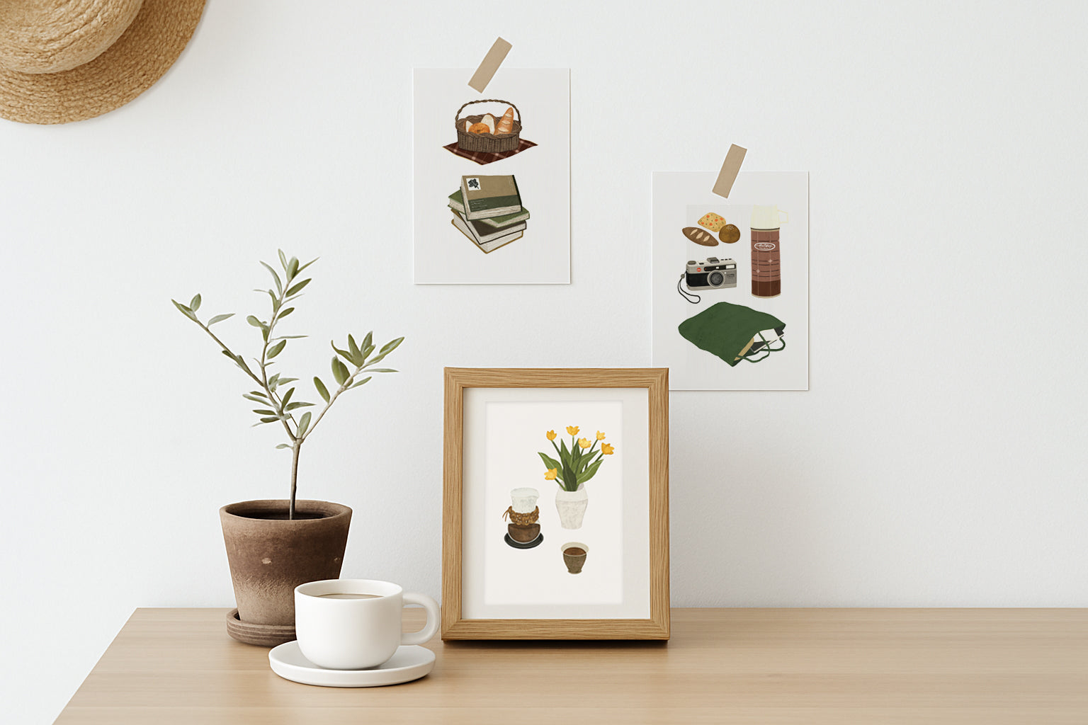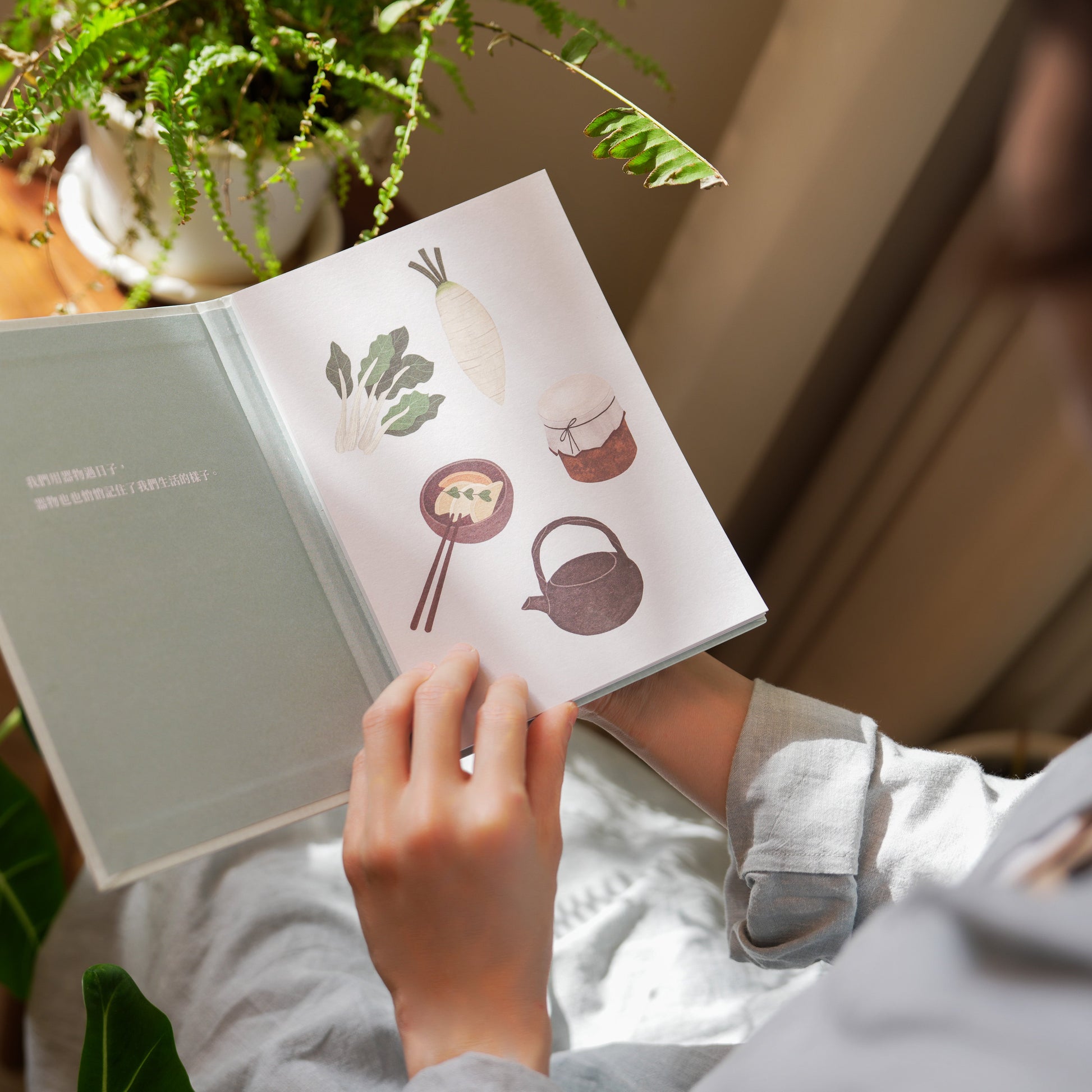「與喜歡的物件,一起記住生活的樣子」13×19cm 高磅數加大卡片精裝成冊,是藝術畫冊、居家布置畫,也是傳遞祝福的卡片。收錄了藝術家常芷 15 幅全新溫潤插畫及生活中的